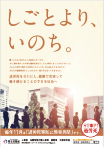 厚生労働省では、11月を「過労死等防止啓発月間」として、長時間労働の削減、過重労働による健康障害防止対策の徹底、労働時間の適正な把握の徹底、賃金不払い残業の解消について周知・啓発活動を実施します。